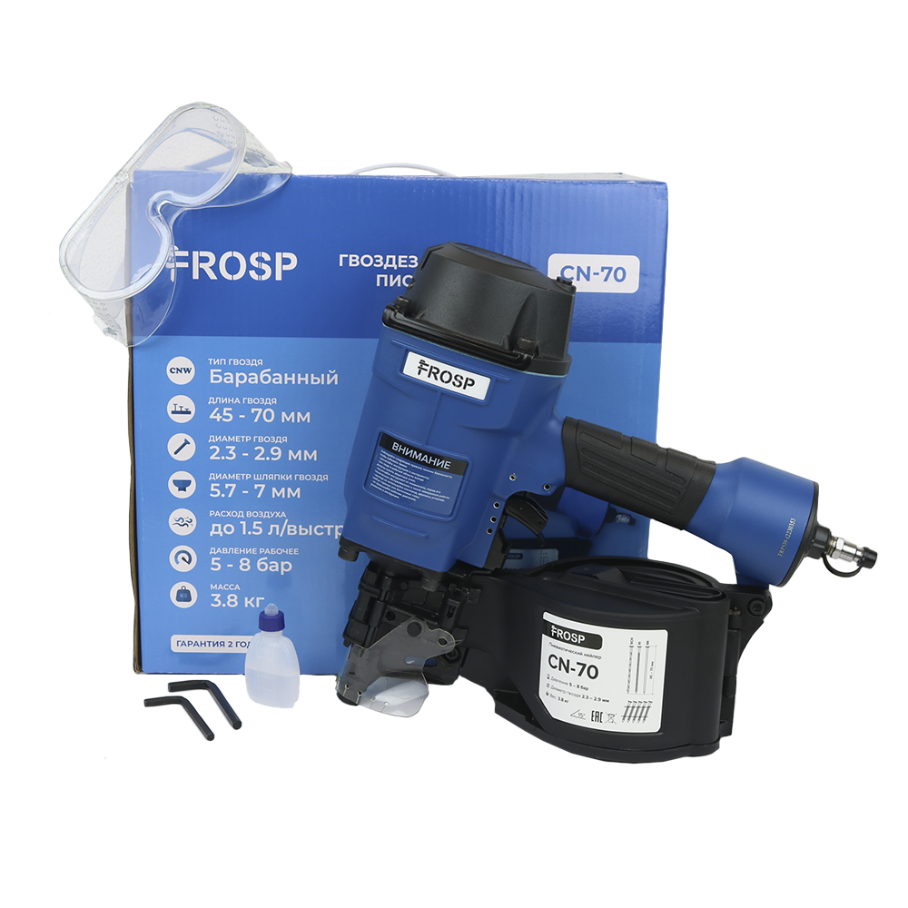 Гвоздезабивной пистолет FROSP CN-70 – барабанный нейлер для работы с деревом. Используется как в строительстве, так и на производстве.