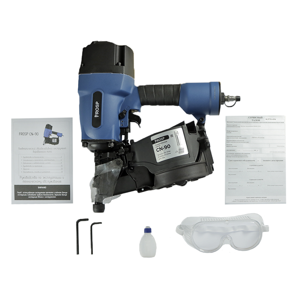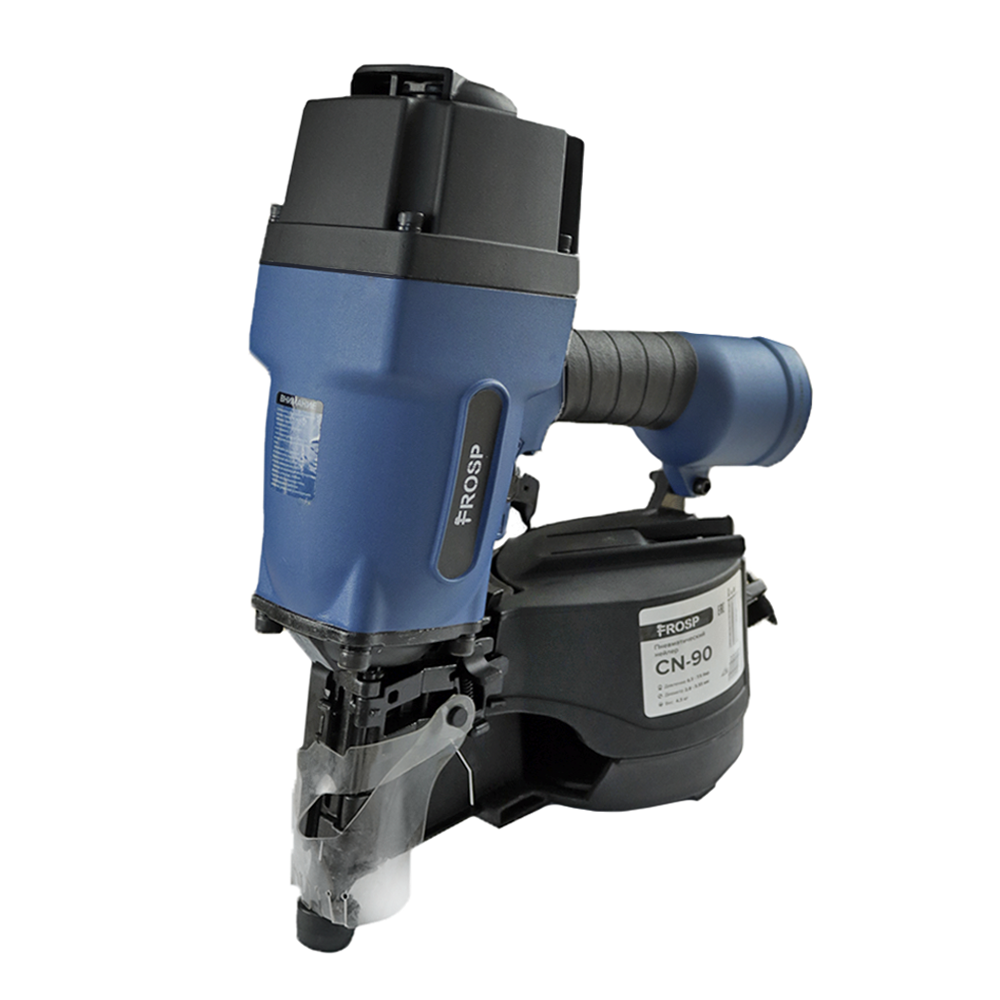 Гвоздезабивной пистолет FROSP CN-90 используется в строительстве и для сборки деревянных поддонов. В пистолет заряжаются гвозди длиной от 45 до 90 мм. Это расширяет возможности инструмента.