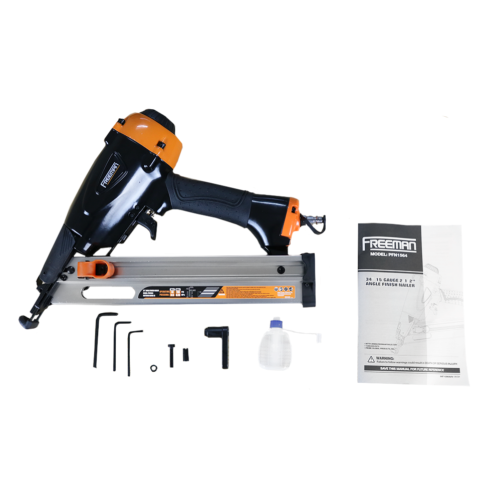 Freeman AF-1564 – пневматический монтажный пистолет для гвоздей, который предназначен для выполнения финишных работ, изготовления мебели и т.д. Подходит как для строительства, так и для производства.
