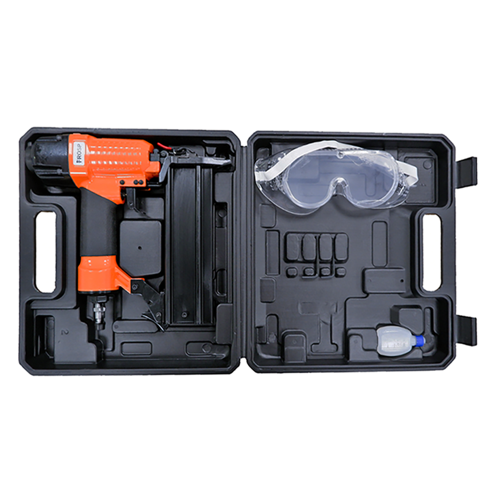 Нейлер штифто-шпилькозабивной пневматический FROSP F50 представляет собой надежный гвоздезабивной инструмент для ускоренного выпуска штифтов\гвоздей. Пневмомолоток оснащен обоймой на 100 штифтов. Допустимый размер штифта для работы этого пневматического гвоздезабивателя — 10-50 мм. Этот пневмопистолет в совокупности с производительностью сочетает в себе компактность и простоту применения. Поэтому используется во многих областях. Пневмомолоток для забивания штифтов этой модели работает при давлении в 4-7 атмосфер, в зависимости от условий эксплуатации.