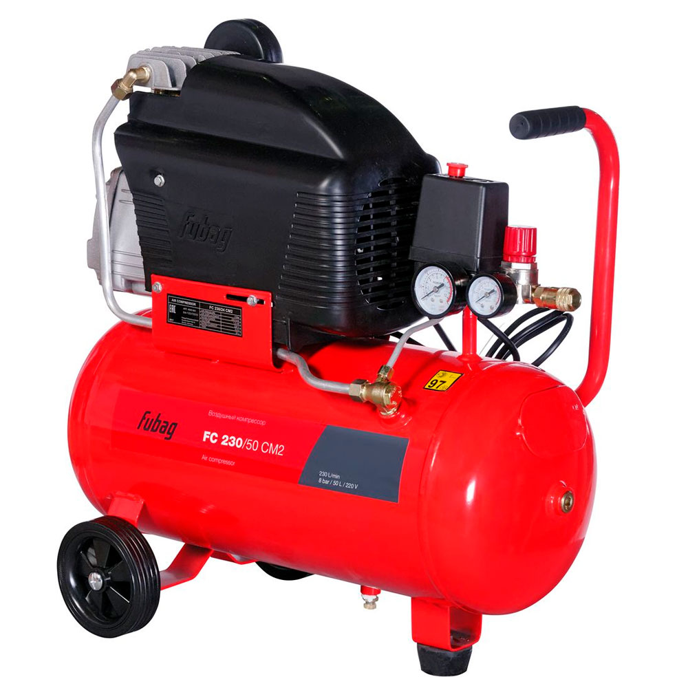 Компрессоры FUBAG FC 230/50 CM2 представляют собой поршневые установки для работы с различным пневмооборудованием. Сфера их применения охватывает промышленные и производственные предприятия, дорожные и строительные работы, коммунальные нужды, а также эксплуатацию в автомастерских и на СТО. Эти масляные коаксиальные агрегаты мощностью 1,5 кВт способны производить до 222 литров сжатого воздуха в минуту. Это при максимально допустимом давлении 8 атм. Устройство оснащено защитой от перегрева.