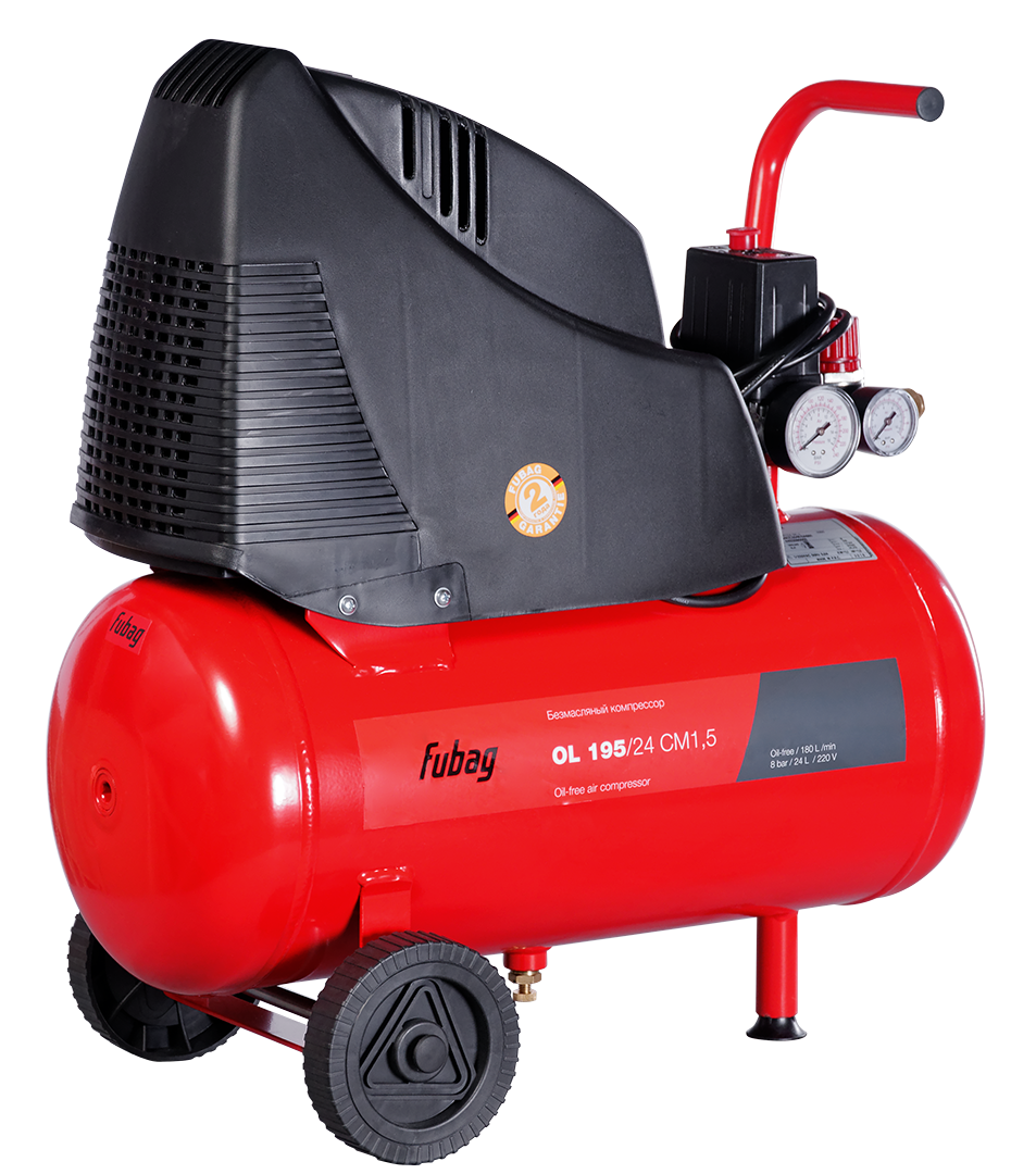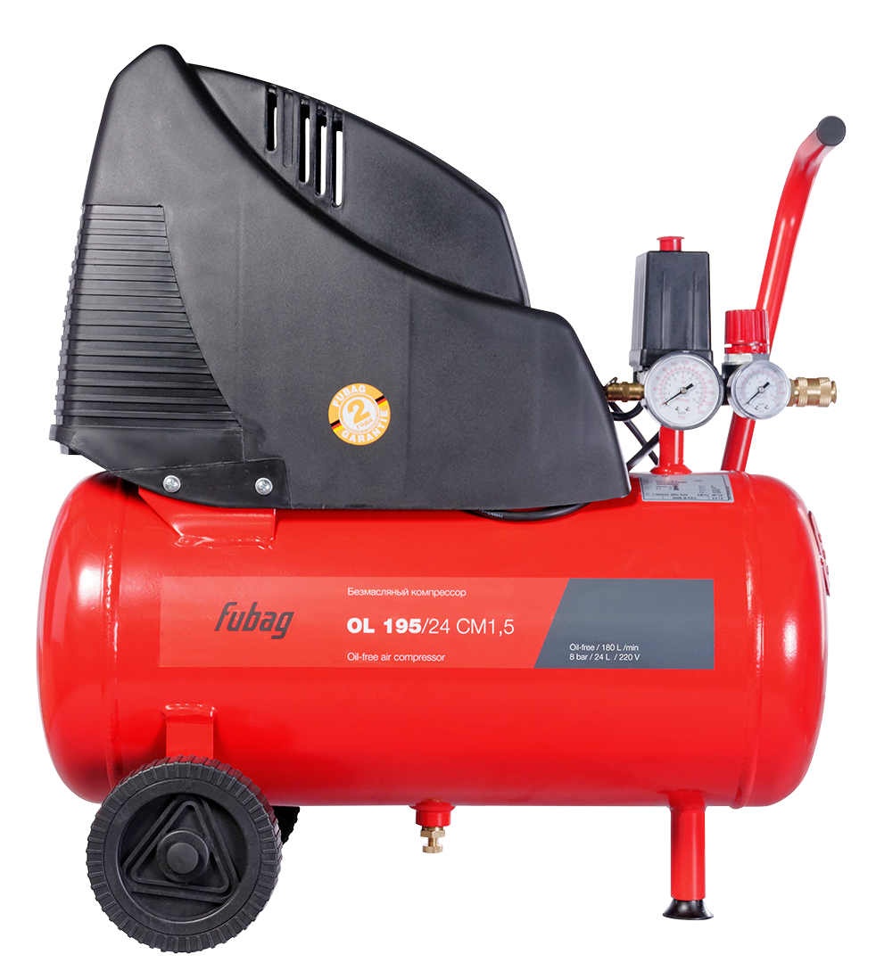 Компрессоры FUBAG OL 195/24 CM1,5 — компактные поршневые установки для применения в тех областях, где имеется небольшая потребность в сжатом воздухе. Это некрупные производства, обслуживание автотранспорта, коммунальная сфера и прочие. Данные безмасляные коаксиальные агрегаты способны обеспечивать 180 литров сжатого воздуха в минуту при работе на предельно допустимом давлении 8 атм. Мощность такого устройства составляет 1,5 кВт. Оборудование оснащено системой автоматической защиты от перегрева.