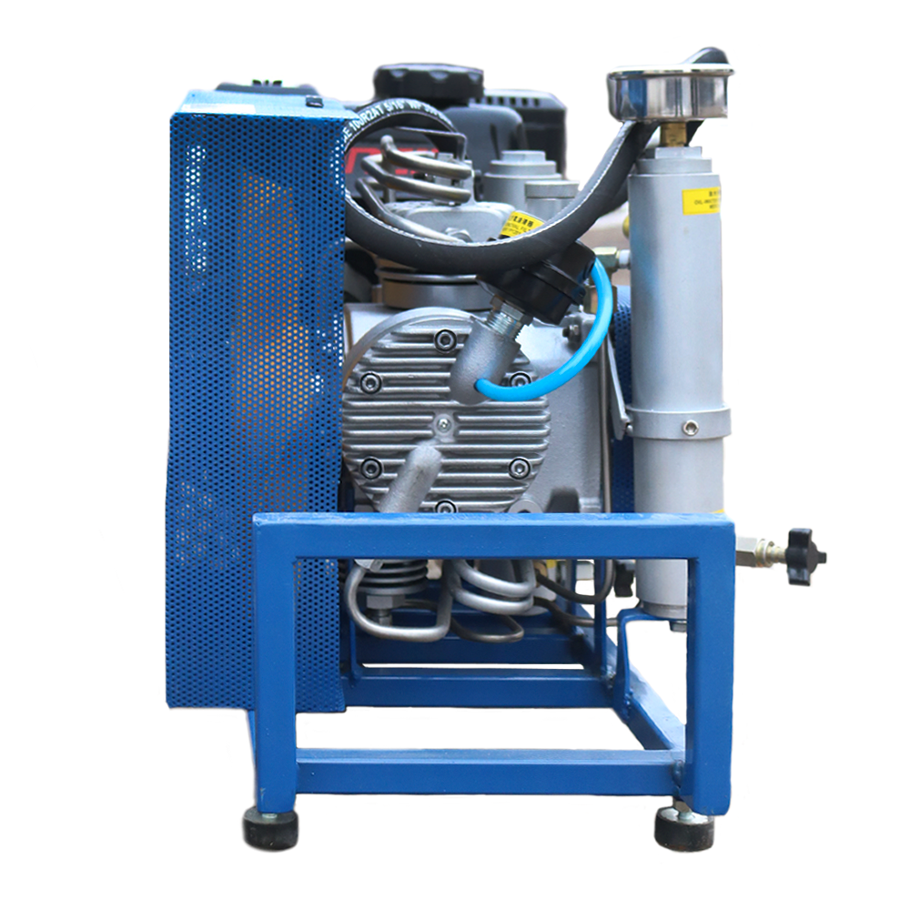 Бензиновый компрессор высокого давления КВД100/300Д — портативный агрегат, обеспечивающий сжатым воздухом или азотом области применения, где требуется заправка баллонов. К таковым, например, относятся дайвинг, пейнтбол и другие. Оборудование обеспечивает быструю заправку: баллон объемом 6 литров полностью заполняется всего за 20 минут. Этот бензиновый агрегат работает при давлении в 300 бар и имеет расход воздуха, равный 100 литрам в минуту. Характеризуется эта компрессорная установка легкостью и компактными размерами, что удобно в эксплуатации. Заправляет баллоны под сжатый воздух объемом от 6 до 10 литров.