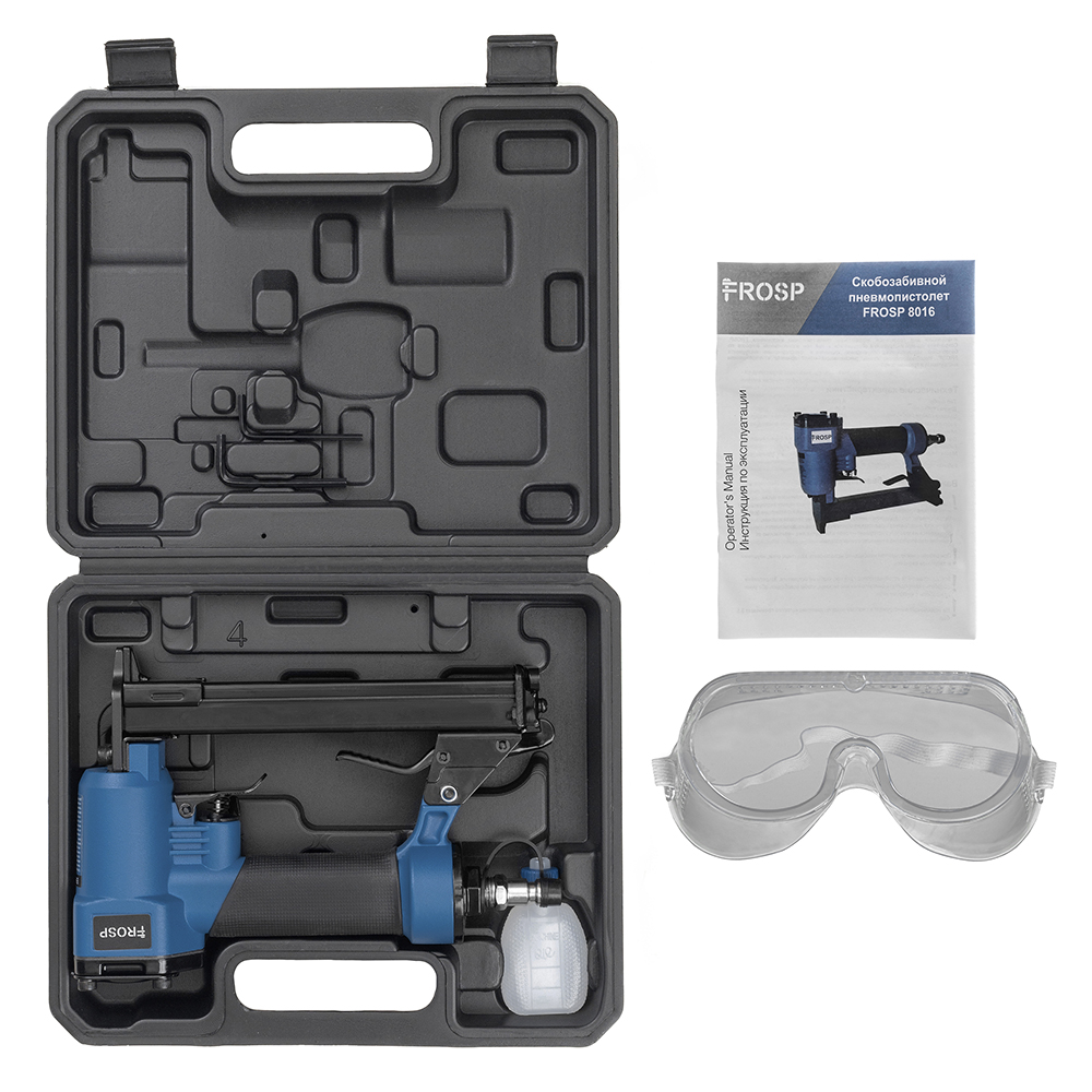 Скобозабивной пневмопистолет FROSP 8016 используется для монтажа стройматериалов с помощью скоб. А так же применяется при сборочных и монтажных работах.