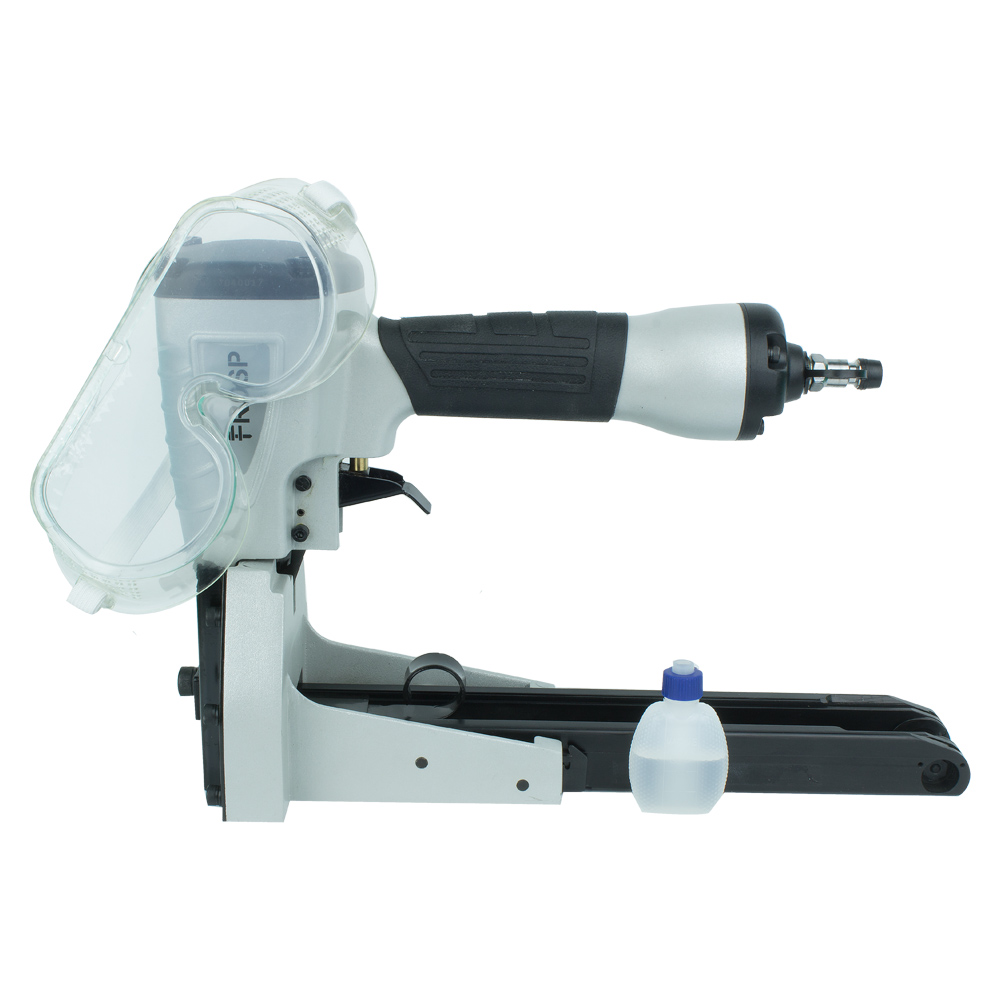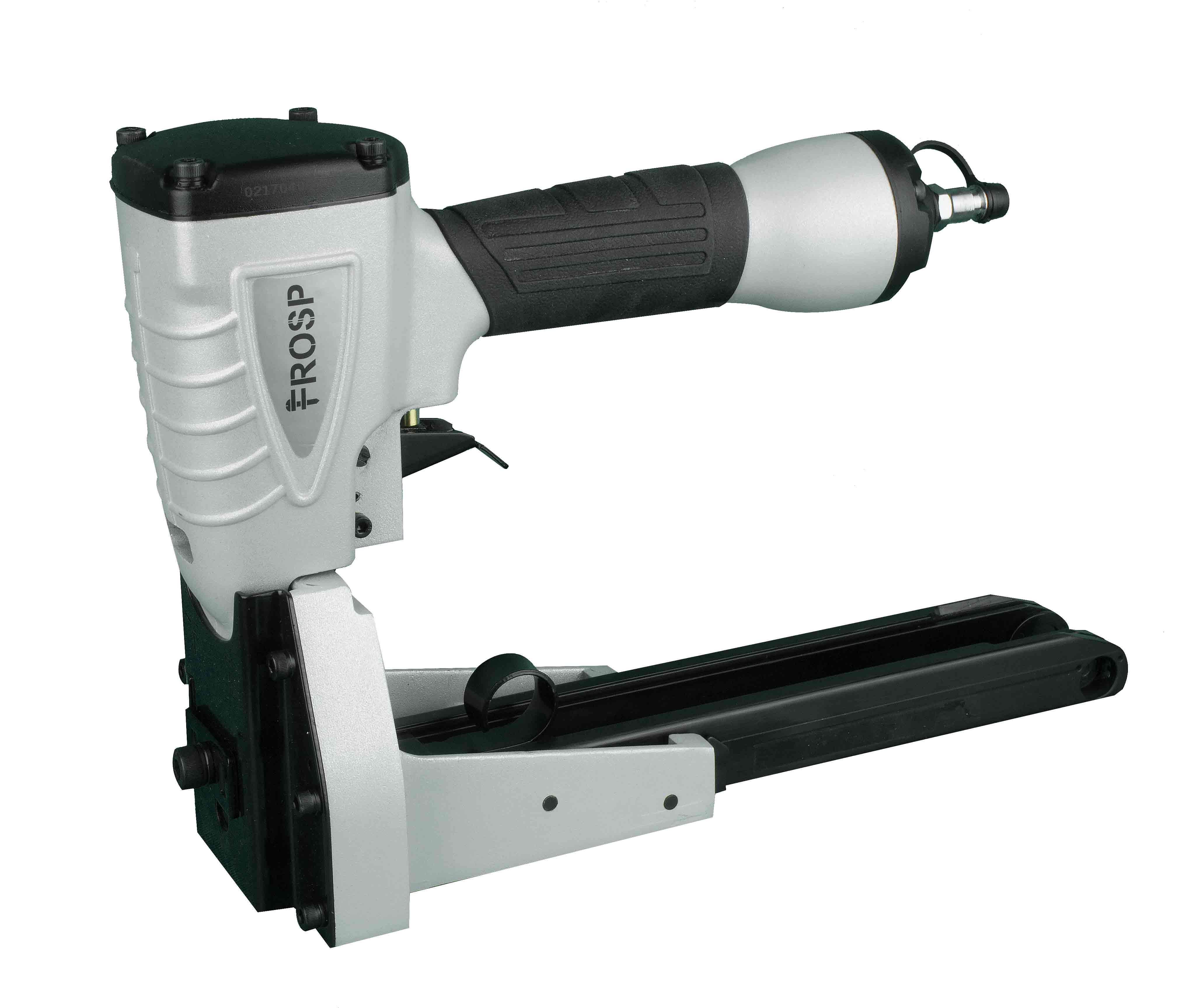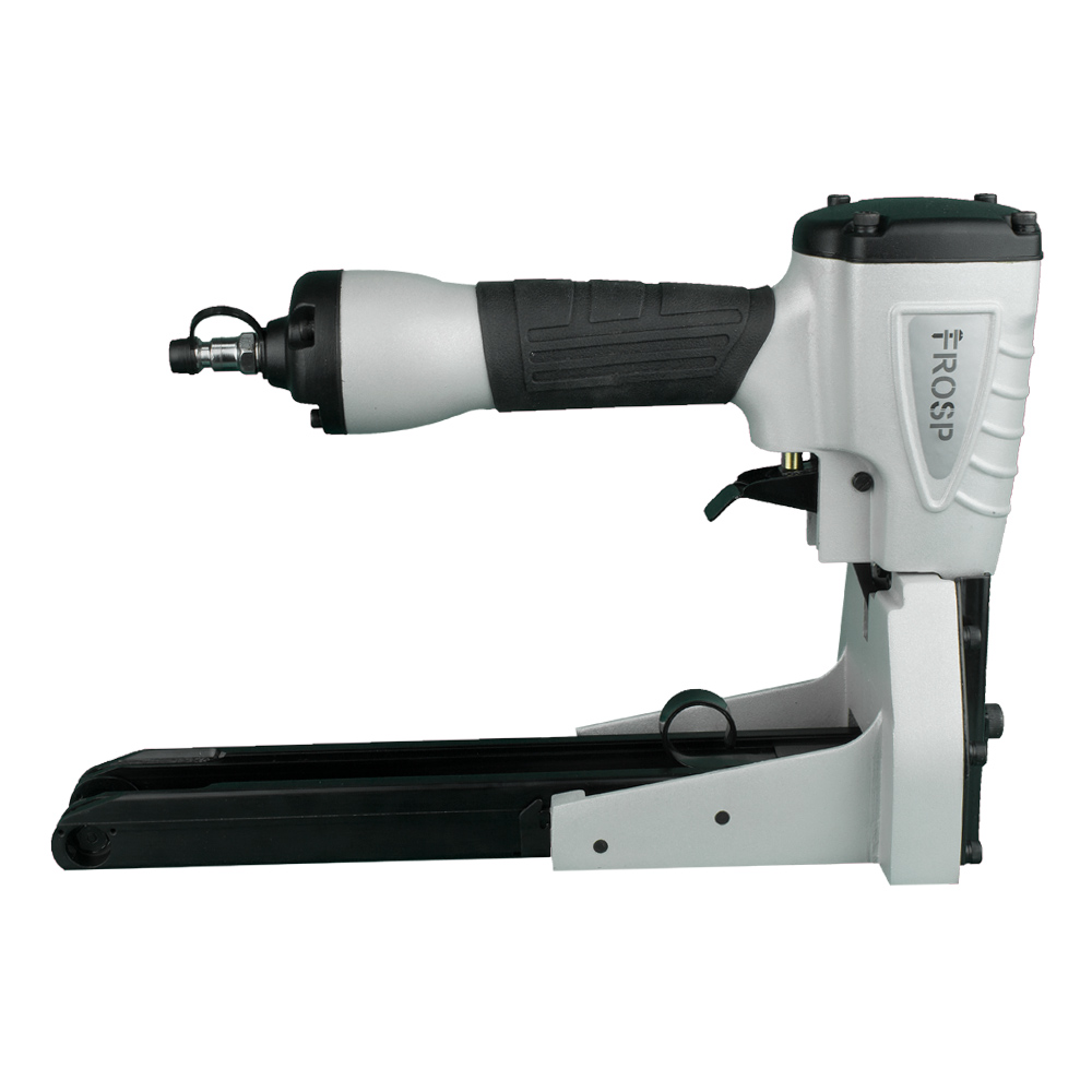 FROSP R9905 – степлер для коробок, работающий на сжатом воздухе. Его используют вместе с компрессором. Пневматический инструмент позволяет выполнить в 2-3 раза больше работы по сравнению с механическим степлером.